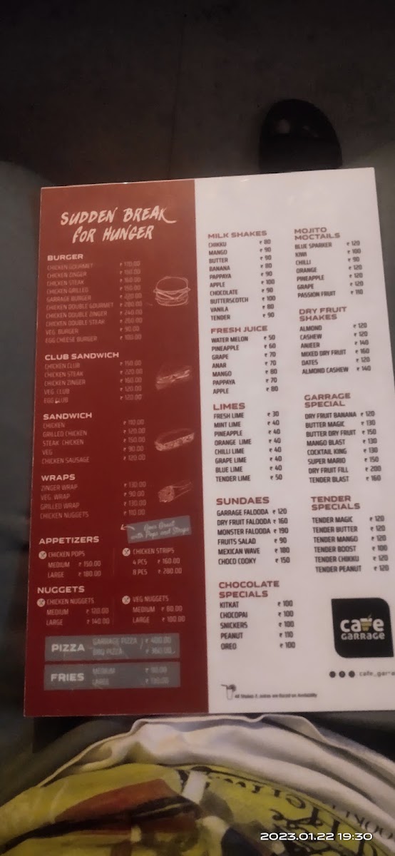 Additionally, the cafe delights in offering unique items like 'Creamy Momos' and even 'Puttu Ice Cream', showcasing a quirky menu that reflects the cafe's innovative spirit. Whether you're sampling the 'BBQ Garage Pizza' or savoring a succulent 'Double Decker Chicken Zinger Burger', each dish promises a delightful burst of flavors that keeps customers coming back for more.